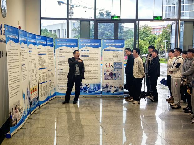 参观实验室安全教育展板过程中,赵毅副院长结合材料类实验室特点,从危化品使用管理、用电安全、个人防护、仪器设备操作安全等方面展开,结合典型案例分析了实验室安全隐患和注意事项,并针对性提出防范措施。